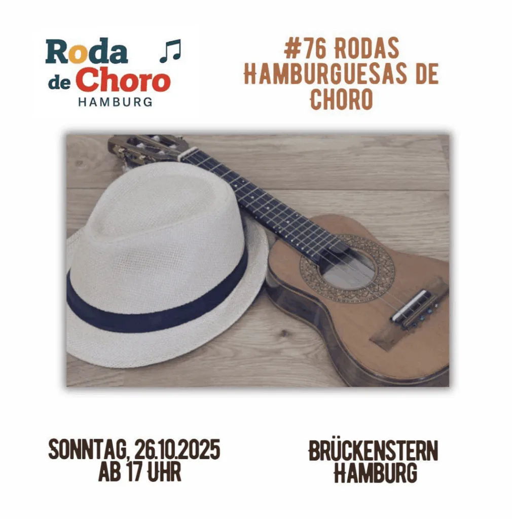 Jeden letzten Sonntag im Monat lädt der Brückenstern zur Roda de Choro ein! Choro ist eines der ältesten und lebendigsten Musikgenres Brasiliens. Die Musik ist bekannt für ihre virtuosen Melodien und Improvisationen, die eine einzigartige Mischung aus Fröhlichkeit und Melancholie erzeugen. Erleben Sie diesen musikalischen Schatz live in geselliger Runde. Der Eintritt ist frei!